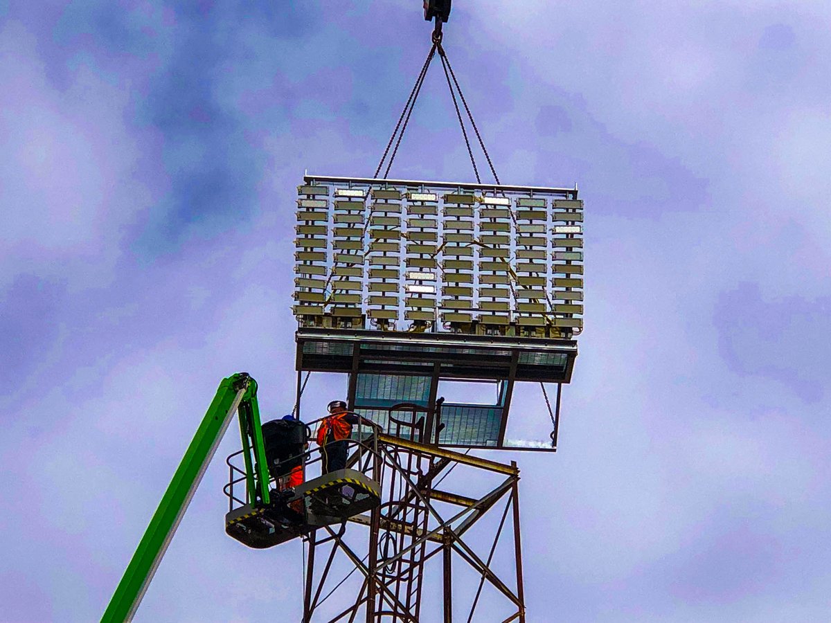 Denne uken blir flomlyset på Blundell Park oppgradert. De gamle lampene byttes ut med moderne LED-lys samtidig som den øvre tredjedelen av tårna blir fjernet.