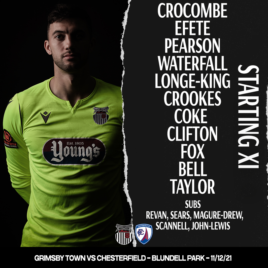 Grimsby (4-5-1): 21. Max Crocombe – 2. Michee Efete, 16. David Longe-King, 6. Luke Waterfall, 22. Ryley Towler – 25. Jordan Maguire-Drew (27. Sam Bell 66′), 4. Ben Fox, 26. Alex Hunt, 15. Harry Clifton, 10. John McAtee – 29. Ryan Taylor (14. Lenell John-Lewis 78′). Innbyttere: 5. Shaun Pearson, 7. Will Bapaga, 17. Seb Revan.