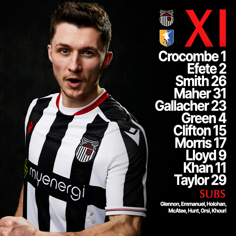 Grimsby (4-2-3-1): 1. Max Crocombe – 7. Josh Emmanuel, 26. Andy Smith, 31. Niall Maher, 3. Anthony Glennon (22. Danny Amos 63′) – 4. Kieran Green, 30. Evan Khouri (8. Gavan Holohan 70′) – 15. Harry Clifton (18. Mikey O’Neill 63′), 10. John McAtee (20. Danilo Orsi 70′), 11. Otis Khan – 9. George Lloyd (6. Luke Waterfall 86′). Innbyttere: 16. Alex Hunt, 17. Bryn Morris.