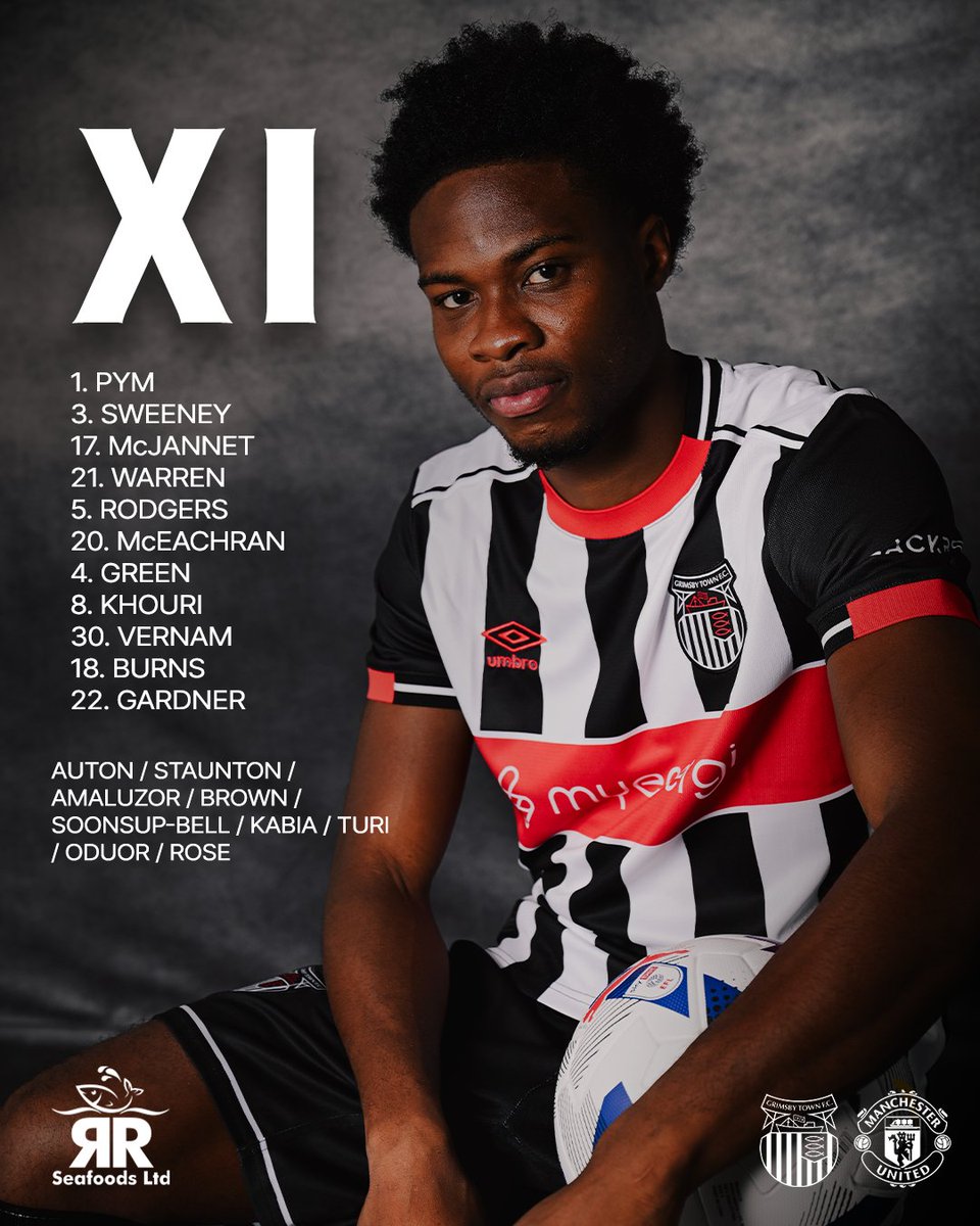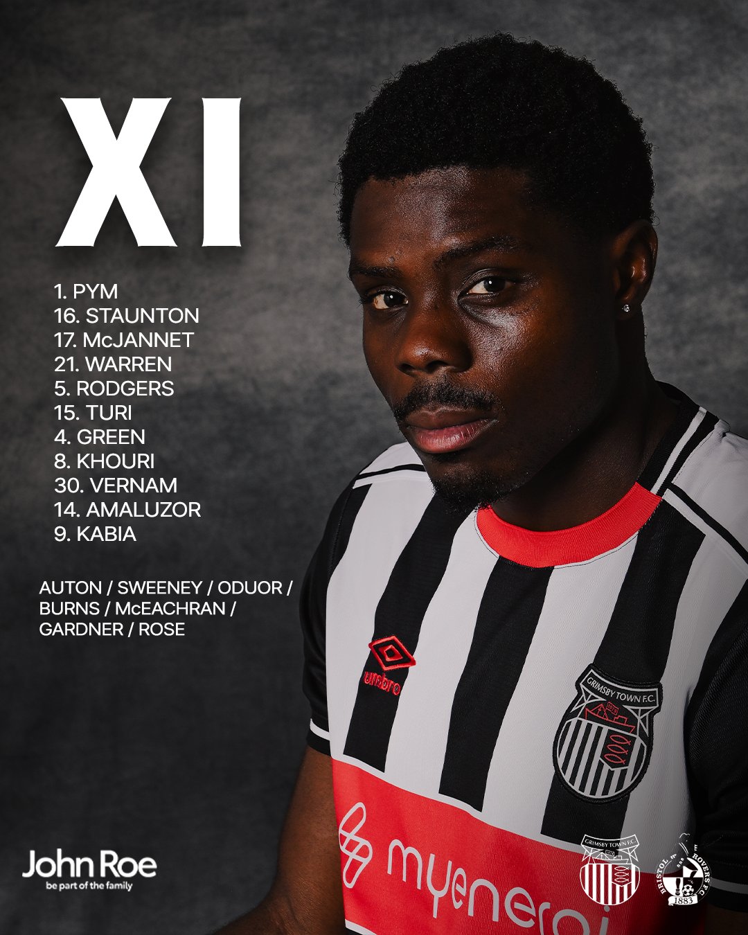 Grimsby (4-3-3): 1. Christy Pym – 5. Harvey Rodgers, 21. Tyrell Warren, 17. Cameron McJannet (C), 16. Reece Staunton – 15. Geza David Turi, 20. George McEachran, 8. Evan Khouri – 14. Justin Amaluzor (22. Cameron Gardner 84′), 9. Jaze Kabia (32. Danny Rose 91′), 18. Darragh Burns (30. Charles Vernam 60′). Innbyttere: 3. Jayde Sweeney, 10. Jude Soonsup-Bell, 23. Henry Brown, 41. Seb Auton.