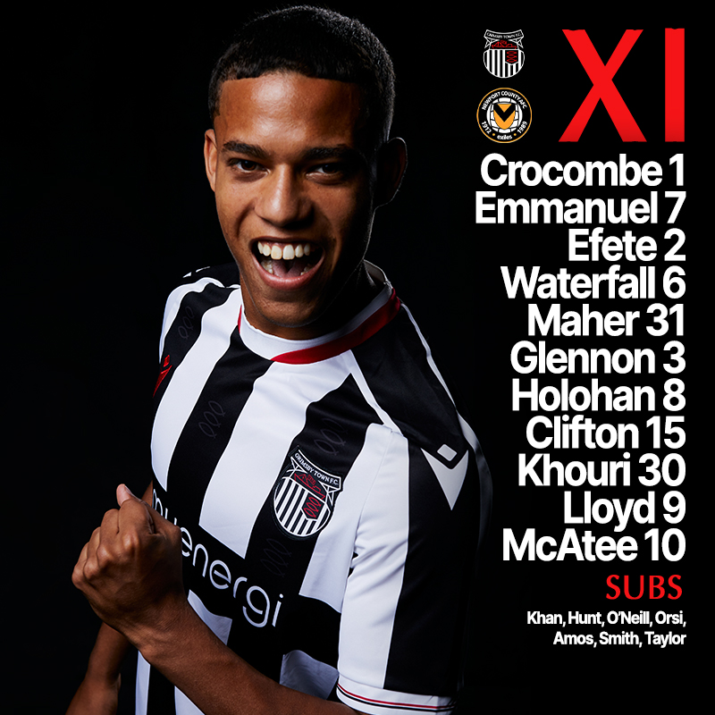 Grimsby (3-5-2): 1. Max Crocombe – 2. Michee Efete, 6. Luke Waterfall, 31. Niall Maher – 7. Josh Emmanuel (29. Ryan Taylor 61′), 15. Harry Clifton, 30. Evan Khouri (26. Andy Smith 61′), 8. Gavan Holohan, 3. Anthony Glennon (22. Danny Amos 84′) – 9. George Lloyd (11. Otis Khan 84′), 10. John McAtee (20. Danilo Orsi 84′). Innbyttere: 16. Alex Hunt, 18. Mikey O’Neill.